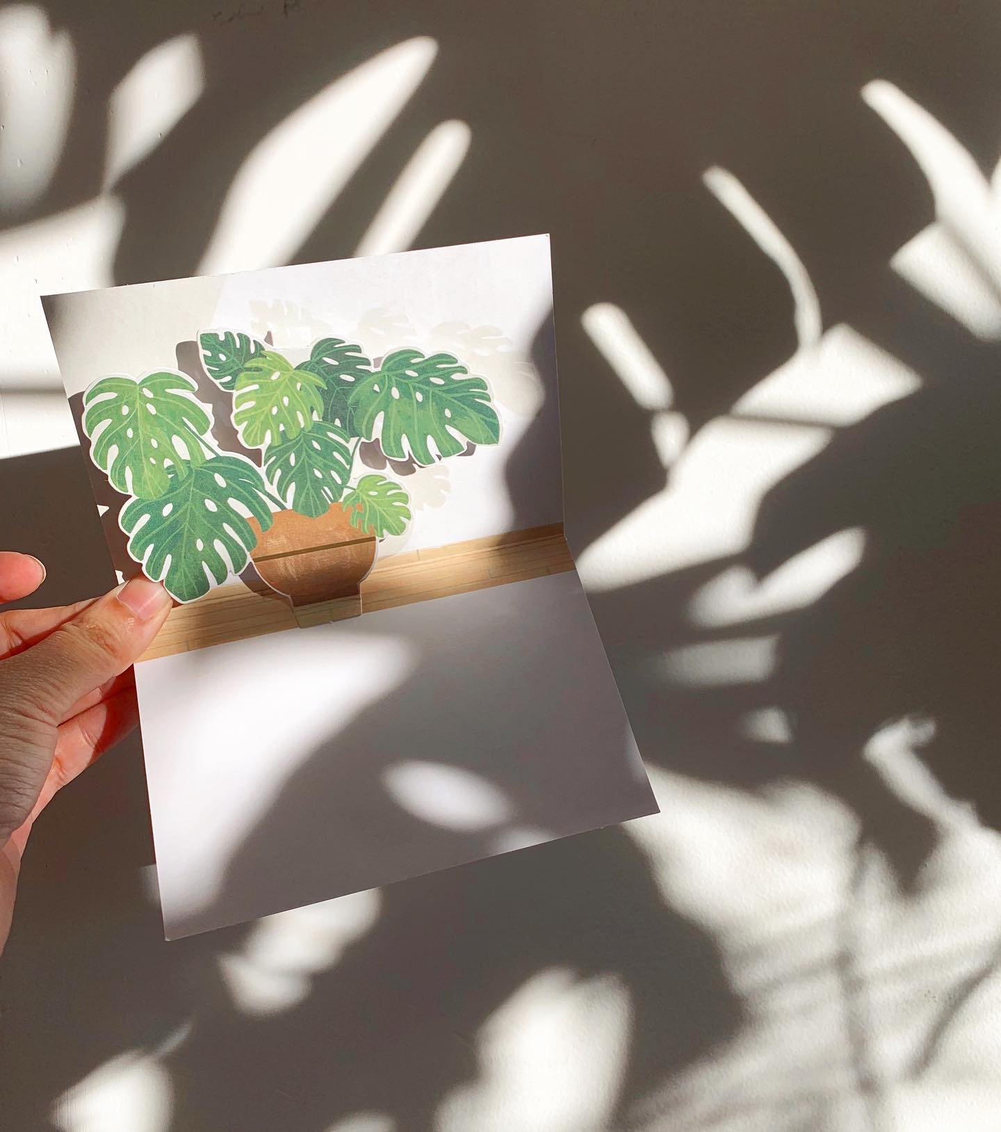 싱그러운 몬스테라와 화분들이 입체적으로 피어납니다.